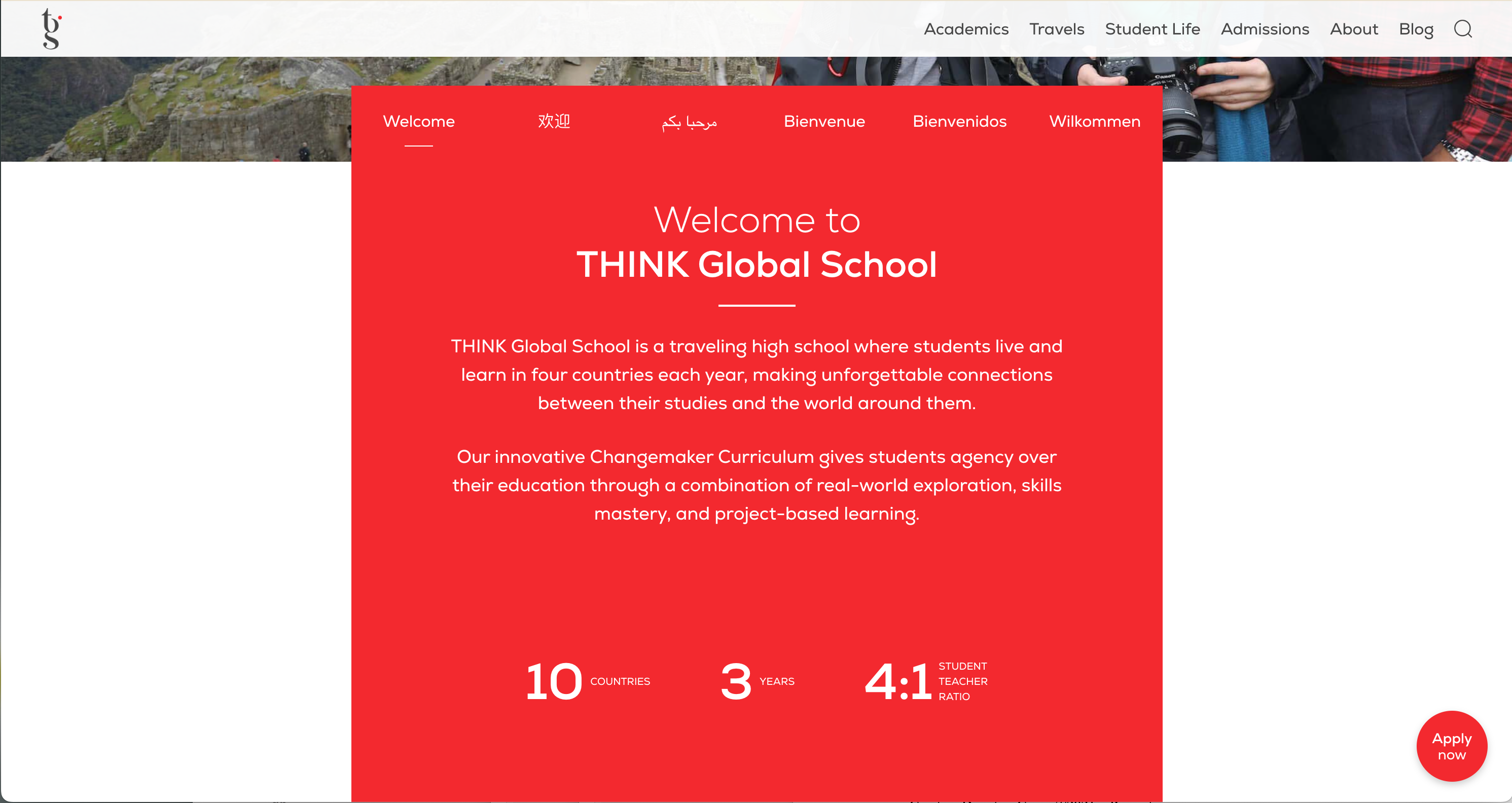 THINK Global School is a unique traveling high school where students live and learn in three countries a year for three years. Tasked with translating this incredible educational opportunity into a brand that appeals to students worldwide, I created a language for discussing travel-based education designed to be as inspiring as the school itself.
