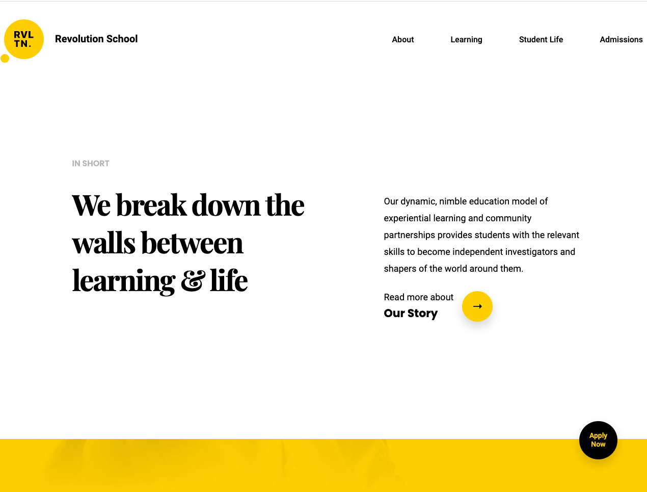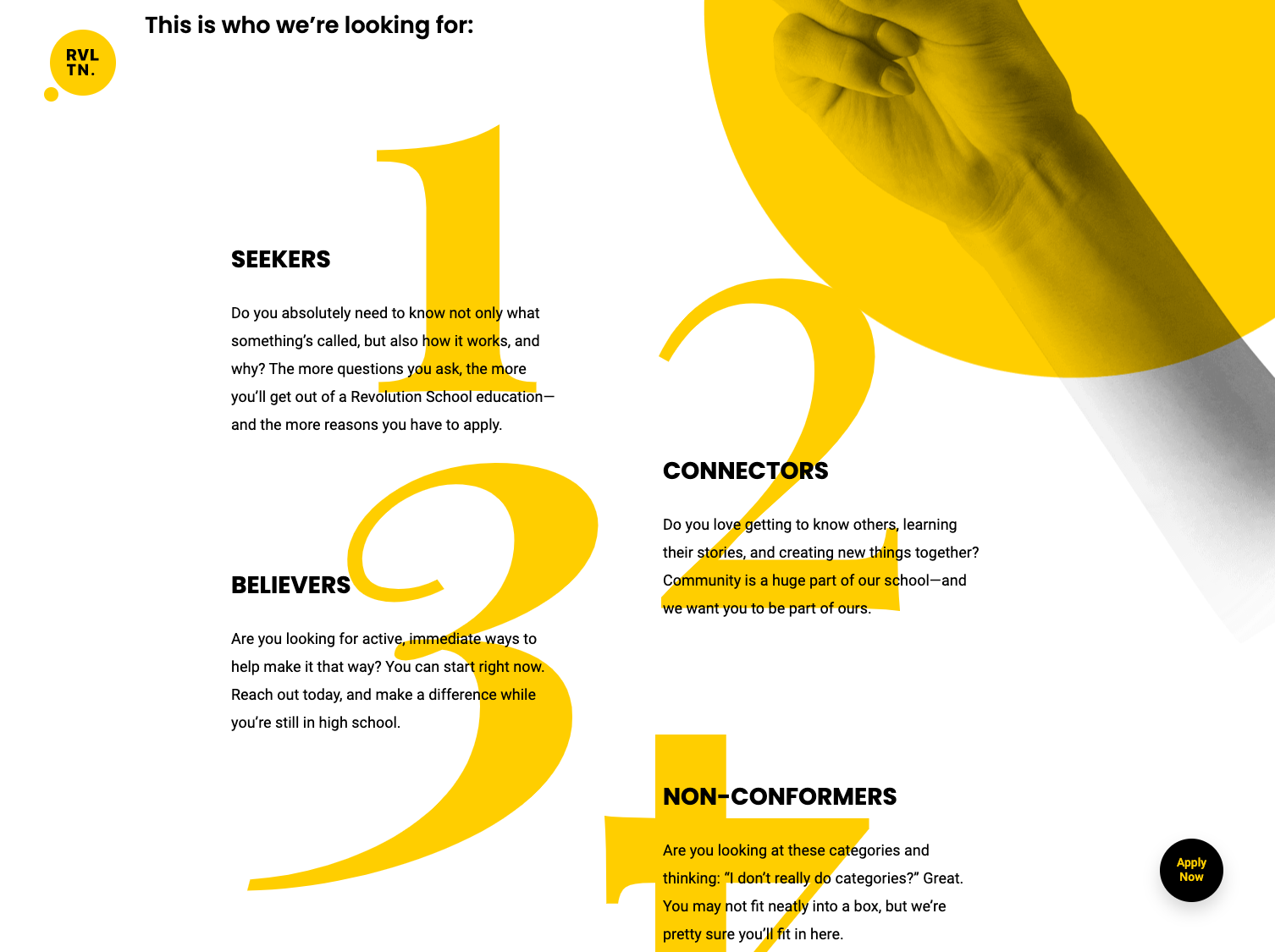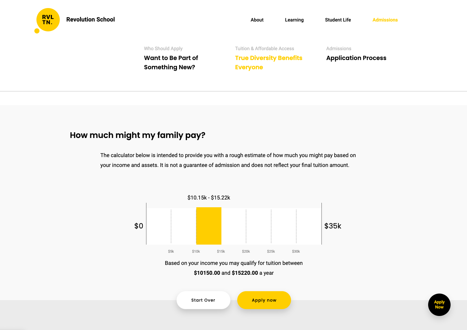 I pushed the brand to speak in simple, powerful language and with relevant content, including a day-in-the-life timeline for students and a calculator to bring their sliding-scale tuition model—and deep commitment to equity—to life.