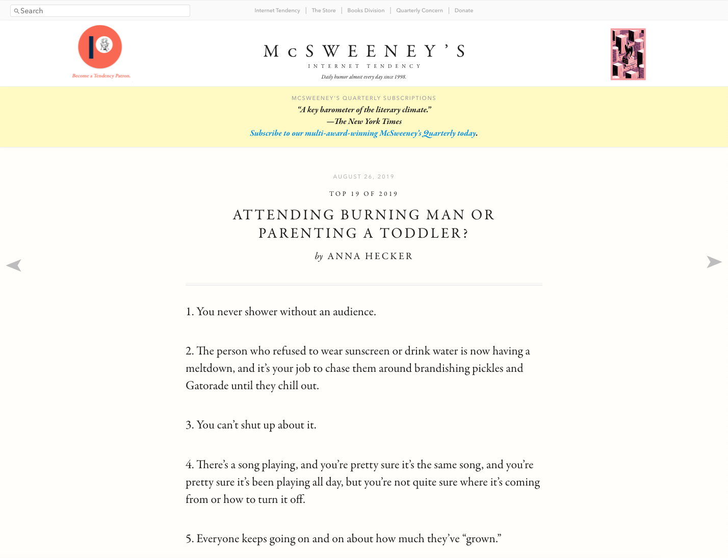 URL www.mcsweeneys.net/articles/attending-burning-man-or-parenting-a-toddler